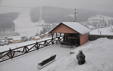 Из окон номеров открывается вид на склоны гор, на сам Буковель с его горнолыжными трассами.